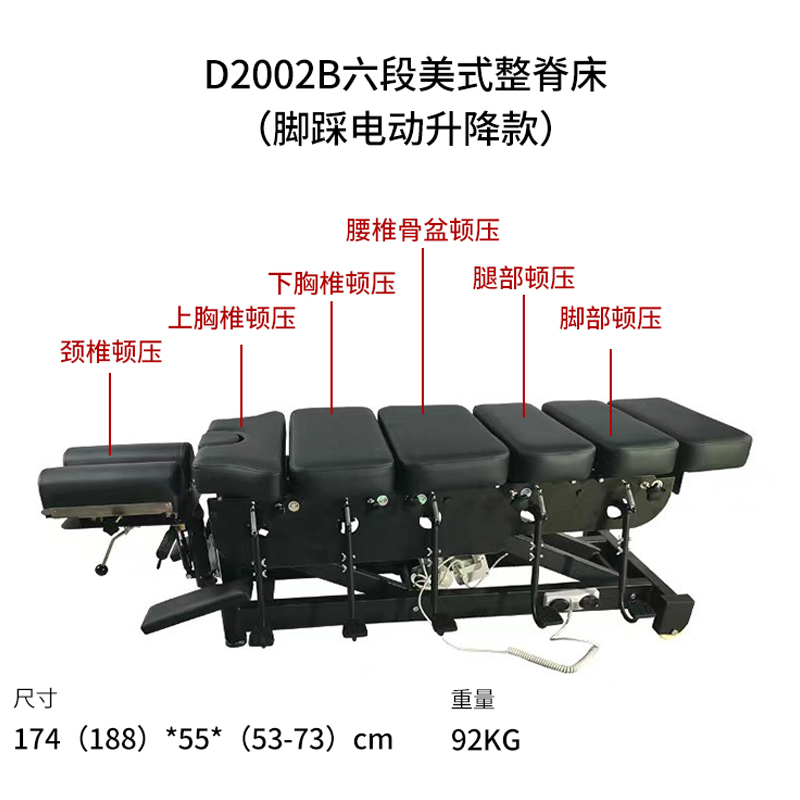 D2002B六段美式整脊床(腳踩電動(dòng)升降款)